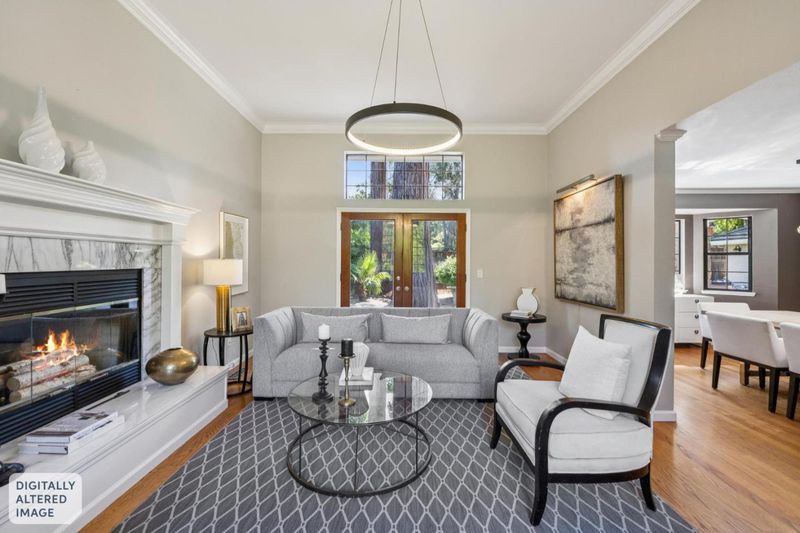 Incredibly spacious with many stunning updates, this exceptional two-story, 4-bedroom, 3.5-bath home offers relaxed California indoor/outdoor living in the sought-after Highlands area with top-rated schools. Set back from the street behind a deep front lawn, the home is surrounded by lush landscaping and mature trees. The grandness of this home is immediately evident as you walk into the beautiful lobby. Inside, the flowing floor plan is arranged for both graceful entertaining and everyday living beginning with the elegant living room and formal dining room with butlers pantry. The designer, quartz-appointed kitchen with center island opens to an expansive family room with fireplace and sliding glass doors to the backyard. The highly flexible accommodations begin with a main-level bedroom and adjacent full bath - ideal for a parent or as an office, while three additional bedrooms, including the grand primary suite with balcony, are privately located upstairs. The perfect place to unwind, the large and serene backyard offers an entertainers patio, lush level lawn, a hot tub, and a variety of mature trees. All this is just steps from Rancho San Antonio County Park, and minutes to Cupertino schools, plus shopping and dining in Rancho Shopping Center and downtown Los Altos