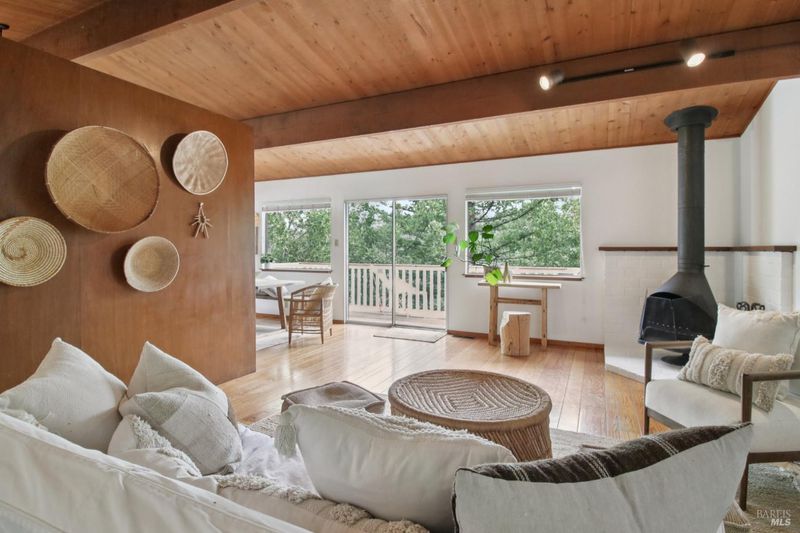 Tucked into the hillside of San Rafael, 34 Fair Drive is a captivating Mid-Century Modern retreat that effortlessly blends timeless design with thoughtful updates and a touch of retro charm. This home invites you to slow down and savor a classic California era. Recently updated with a new roof and new quartz kitchen countertops, the home offers both style and peace of mind, pairing clean, modern finishes with its retro-chic aesthetic. The property features a flat driveway, two-car garage, and abundant additional parking making everyday living and entertaining refreshingly easy. A rare find for a hillside setting. Inside, you'll find large bedrooms and a distinctive style that celebrates the home's architectural roots while remaining warm and livable. The flexible layout includes a workroom under the house, ideal for creative pursuits, storage, or a private studio. The inviting living area is anchored by a cozy wood-burning fireplace of the classic freestanding MidMod style, perfect for relaxing evenings and adding warmth and character to the space. The home boasts four separate decks, offering multiple vantage points to relax, entertain, or soak in the surrounding ambiance. The fenced yard provides privacy and functionality, while the hot tub and outdoor shower create a spa-like experience under the open sky. Conveniently located with easy access to Highway 101, this home offers a seamless commute while still feeling like a private retreat. Formerly a renowned musicians retreat, 34 Fair Drive is more than a home it's a lifestyle, capturing the spirit of a bygone California with the comforts and conveniences of today.