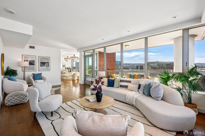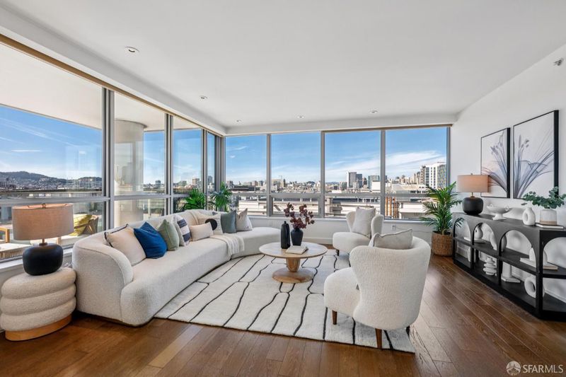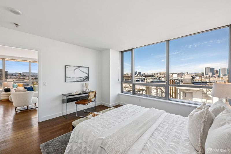 Mission Bay living at Arden! This larger corner home features one of the most spacious 2-bedroom, 2-bathroom floor plans in the building, perfect for entertaining with separate dining and living areas, premium finishes throughout, including Thermador appliances, wide-plank wood floors throughout, a private XL terrace, an expansive dining area, a balcony off the second bedroom, and a versatile open floor plan. The expensive primary suite boasts a walk-in closet finished with California Closet organizers and a luxurious en-suite bathroom with a double sink vanity, a walk-in shower stall, and a separate tub. Floor-to-ceiling windows beautifully showcase the breathtaking views of the city, Bay Bridge, Twin Peaks, and Sutro Tower. Parking with an EV charger and additional storage are included. Amenities include two hotel-inspired lobby lounges, a 75' pool and spa, a glass-enclosed fitness center, and a beautiful open-air deck featuring a grilling and a fireside gathering area. Arden is located in the vibrant Mission Bay neighborhood and just a short walk to Chase Center, Oracle Park, Social Sparks, tech HQs, cafes and restaurants, MUNI, Caltrain, I280, and the UCSF campus.