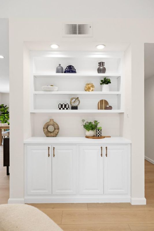 This lovely residence offers one of the largest lots and premier locations within the highly sought-after Kentfield Commons community, being surrounded by lush, manicured grounds. This home has been extensively remodeled with city permit and is truly move-in ready, showcasing a refined, modern aesthetic throughout. The light-filled great room features soaring vaulted ceilings and expansive windows that seamlessly connect indoor living with the beautifully outdoor landscaped. The updated kitchen is both elegant and functional, featuring luxury slim shaker cabinetry, gas range, and modern island hood, complemented by sleek quartz countertops and mosaic backsplash tiles and a garden window. The dining area is bathed in natural light, creating an inviting space for everyday living and entertaining. The spacious primary suite offers vaulted ceilings and a enlarged shower room, providing a serene retreat. Additional rooms are well-proportioned and versatile, ideal for guests, family, or a home office. The professionally landscaped backyard is designed for both relaxation and entertaining, featuring a pergola, expansive turf lawn, and greenery and flowers with excellent sunlight exposure. A rare opportunity to own a turnkey home in one of the most desirable communities in the area.