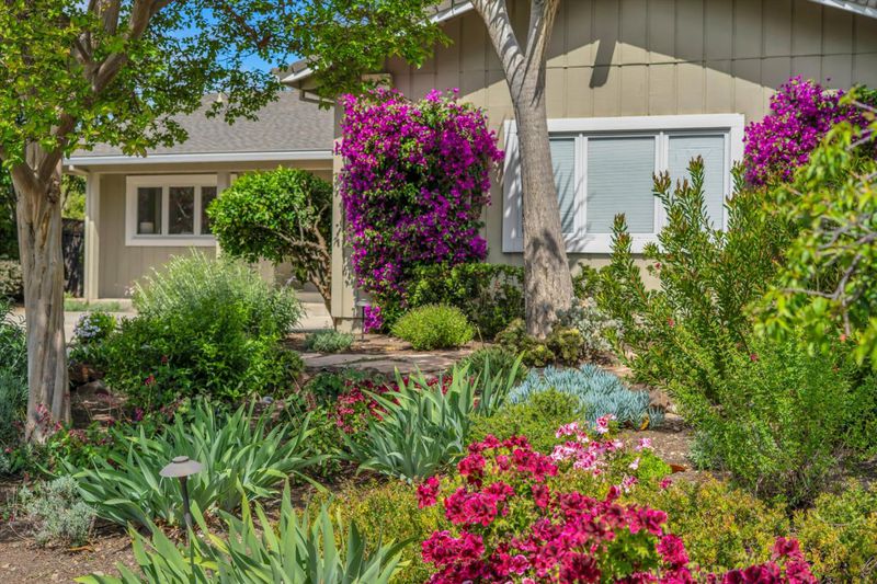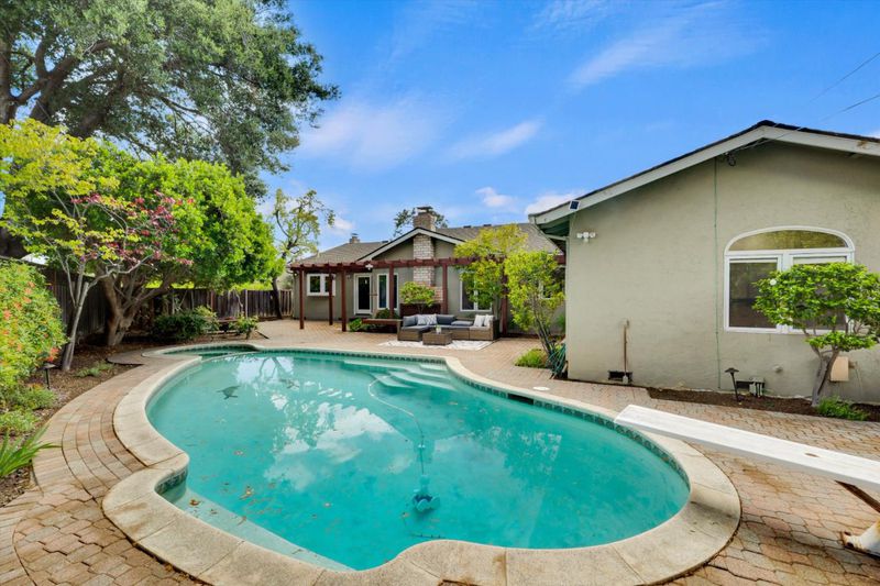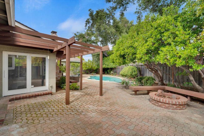 Quintessential ranch-style Saratoga home. Positioned at the end of a quiet, secluded court, this home sits on a premier pie-shaped lot, offering a sprawling backyard oasis rarely found in the area. Discover the perfect blend of privacy and functional design in this impeccably maintained 4-bed, 2.5-bath retreat. Inside, the 2,622 sq. ft. layout is thoughtfully zoned for modern living. Signature elements include flawless, gleaming hardwood floors and a distinct "bedroom wing" for maximum peace and quiet. High end "Pella" windows have been installed in many parts of the home, showcasing a taste for quality and energy efficiency. The primary suite serves as a true sanctuary, featuring views of the lush grounds, a walk-in closet and a spa-inspired bathroom. Ample storage throughout the home provides space for everything one could need. Entertain easily in the separate living and family rooms (including a wet bar), which could accommodate dozens of people, or take the gathering outdoors to the "crystal blue" pool and built-in fire pit. The magazine-quality landscaping features a perfect blend of flowers and uniquely positioned, rare plants, including productive fruit trees. With access to premier schools like Prospect High, this home offers long-term quality in an unbeatable location.