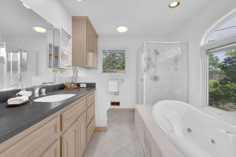 Double Sinks, Primary - Stall Shower(s), Primary - Tub with Jets, Shower over Tub - 1, Tile