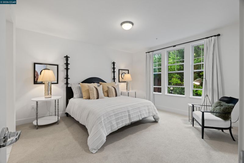 Welcome to this beautifully appointed 3-bedroom, 2-bathroom end-unit residence, ideally situated on the second floor with serene courtyard and creek views. Built in 2017, this modern home offers the perfect blend of style, comfort, and convenience in the heart of Lafayette. Flooded with natural light from expansive windows, the open-concept layout creates a bright and inviting atmosphere throughout the spacious living and dining areas. Thoughtfully designed with high-end finishes, the home features laminate wood flooring, new carpet in the bedrooms, and fresh interior paint, offering a truly move-in ready experience. The primary suite serves as a private retreat, complete with a walk-in closet and a beautifully appointed en-suite bath featuring dual sinks, a soaking tub, and a large walk-in shower. Additional amenities include in-unit laundry, central air conditioning, secure building access, and elevator convenience. Tandem parking spaces are ideally located near the elevator, adding ease to everyday living. Enjoy the best of Lafayette just moments from vibrant restaurants, cafés, boutique shopping, BART, and the scenic Lafayette Reservoir. With top-rated schools and easy freeway access, this home offers an exceptional lifestyle in one of the East Bay’s most desirable areas.