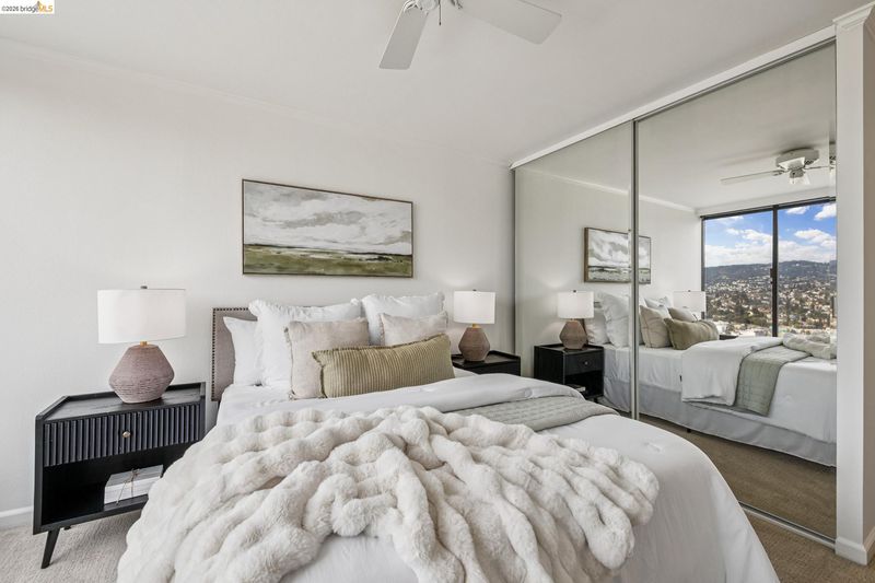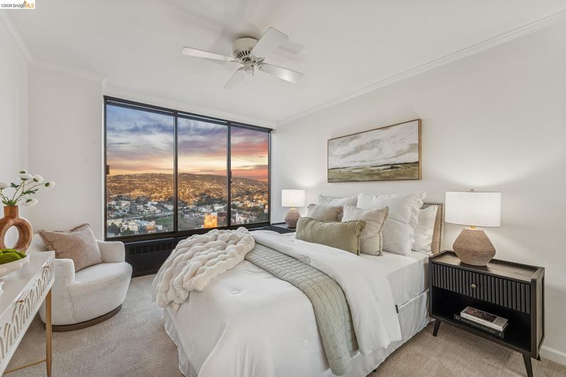 Stunning panoramic Lake Merritt, SF Bay and Oakland Hills view luxury 2B/2B Penthouse condominium. Expansive windows fill every room with natural light, showcasing these breathtaking water views and hillside vistas from every living area! Spacious open floor plan with hardwood floors and custom kitchen finishes highlighted by new quartz countertops with bar ideal for entertaining. Primary bedroom has ample closet space; primary bath has wonderful walk in shower perfect for aging in place. Park Bellevue is a full service luxury building with premier amenities including pool, fully equipped fitness center, sauna and elegant club room for gatherings and private events. Park Bellevue is perfectly positioned near dining, shopping and cultural destinations and employment centers. This a rare opportunity to own a luxury Penthouse home in one of Oaklands most desirable locations. This is true luxury living at its best!
