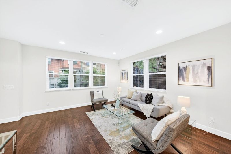 Welcome to 1077 Zucchini Terrace, located in the highly desirable Cherry Blossom at Pepper Tree community. This sought after two-bedroom floorplan offers approximately 1,341 sq ft of thoughtfully designed living space. This end, corner unit provides exceptional privacy with only one shared wall and is filled with natural light from an abundance of extra windows. The main level features hardwood flooring, recessed lighting, and a spacious living area that flows seamlessly into the dining and kitchen spaces, creating an ideal layout for both everyday living and entertaining. The kitchen is appointed with granite countertops, ample cabinetry, and updated appliances. Just off the dining area, enjoy a private patio perfect for relaxing and enjoying upcoming summer evenings. Upstairs, both bedrooms feature en-suite bathrooms, offering comfort and functionality. Additional highlights include indoor laundry, an attached two car garage, new interior paint, new carpeting, a tankless water heater, and central heating and air conditioning. Enjoy community amenities including playgrounds, greenbelts, and a clubhouse, all conveniently located near commute routes, tech campuses, shopping, dining, and so much more. It's time to call 1077 Zucchini Terrace your HOME!