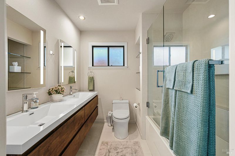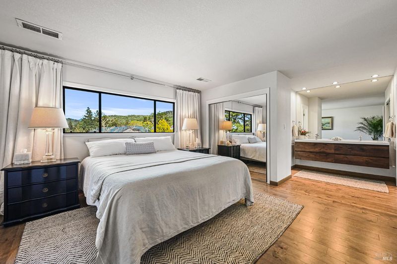 Tucked away on a quiet cul-de-sac in one of Bennett Valley's most desirable neighborhoods, this beautifully remodeled home blends comfort, style, and a deep connection to nature. With 3 bedrooms, 2.5 bathrooms, and a charming detached studio, it's thoughtfully designed for comfortable everyday living. The home welcomes you with the warmth of solid maple flooring, vaulted ceilings, and abundant natural light. The remodeled kitchen, featuring quartz countertops and modern finishes, flows seamlessly into the open living and dining spaces, creating an inviting setting for everyday living or entertaining. Updated bathrooms offer clean, contemporary design, while the detached studio provides a versatile space well suited for a home office, art studio, fitness area, or creative retreat. Enjoy Restoration Hardware lighting, a pull-down TV mount and an ADT-ready security system setup. Outside, unwind on the spacious deck, take in peaceful hillside views, or enjoy the quiet sounds of nature that make this property feel like a private retreat. An owned solar energy system makes this home as efficient as it is beautiful. Ideally positioned for access to some of the area's most notable amenities, the property is just around the corner from the Veterans Memorial Trail, which connects to Trione-Annadel State Park and Spring Lake Regional Park. It is also minutes from Bennett Valley Golf Course and Howarth Park. Montgomery Village adds to the convenience with a mix of retail, dining, and everyday services, including businesses such as Apple, Anthropologie, Vuori, Salt & Straw, Fieldwork, Mendocino Farms, Blue Bottle Coffee, and Copperfield's Books. With its modern updates, energy-efficient features, and serene setting, this Bennett Valley home is a rare blend of style, comfort, and a true connection to nature.