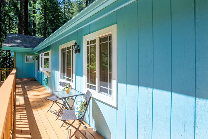 Welcome Home to the Haven in the Redwoods! Set above the fog line and nestled among the canopy of the lush redwood forest in the Santa Cruz Mountains, this charming three-bedroom, two-bath home offers peaceful living on a sunlit hillside overlooking the forest. Its an ideal home for those who value serenity, privacy, and treehouse views. Step inside to find skylights in each room, new hardwood floors throughout, two remodeled full bathrooms, and an abundance of natural light. Start your days on the deck with a cup of coffee, soak in the quiet beauty of the redwoods, breath in the clean pine air, before easing down to the grocery store not five miles away. This move-in ready home is well cared for, with a recently refreshed kitchen with granite countertops, newer appliances, and lots of cupboards. The east-facing primary bedroom features an ensuite bathroom. The second bedroom features a skylight, and the flexible third bedroom is perfect for a home office or studio with full morning sun. Parking is easy with a two-car driveway plus an additional pull-out at road level for guests or deliveries. Well suited as a full-time residence or an easy lock-and-leave retreat, this home offers a rare opportunity for those seeking quiet, privacy, light, and simplicity in a redwood setting.