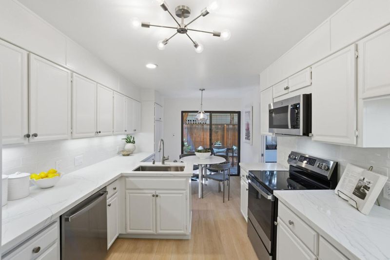 Welcome Home! Wonderful 2bd/2ba home surrounded by your private gardens! Enjoy this private, bright and spacious ground floor end unit that feels like a single family home, offering patio and gardens on 3 sides with views to your private garden from all the living spaces. Enjoy fabulous interior amenities including new appliances, new flooring, new inside laundry tower, fireplace and wonderful whimsical new lighting fixtures. You will also appreciate the short walk to your home from the front door through the light filled hallway. Featuring 2 assigned parking spaces and a private storage room in the secure garage. Centrally located, just a short distance to the bustling downtowns of San Mateo and Burlingame and all their interesting restaurants and shops! Come and enjoy a tour of this amazing and unique home! home!!