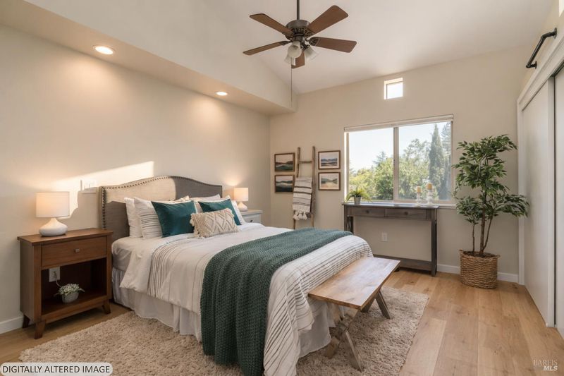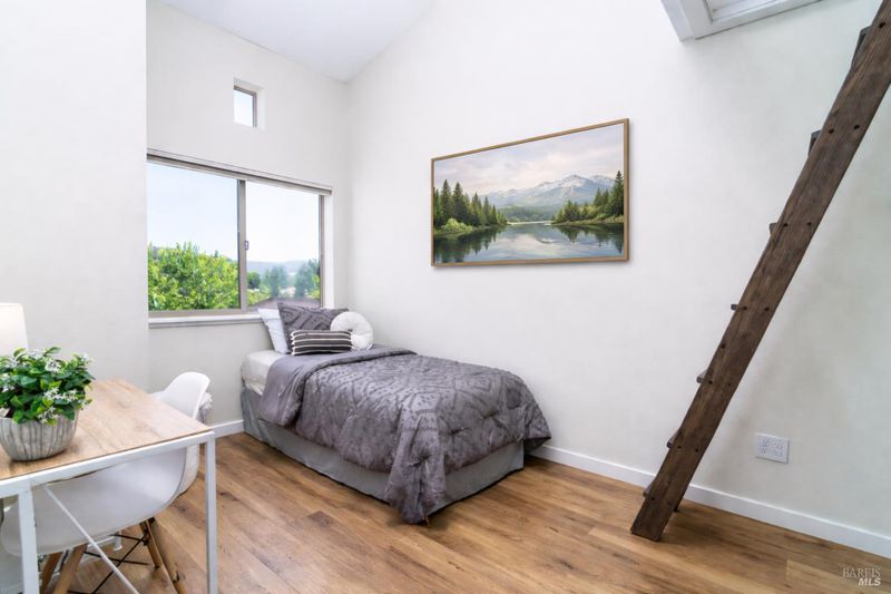 Yulupa Cohousing invites you to become an active participant in their vibrant community! The Members of the community are instrumental in creating "The Greenway" public park and open space project next door. Members often gather as neighbors and friends to share meals and events. The community gardens, playground and common kitchen are in the same courtyard as Unit E. The gym and guest quarters are steps away. Shared resources include a well equipped workshop, bike storage and EV parking. This upstairs, single level unit has an open and stylish design featuring two bedrooms, two baths, an office with built-in shelving and an in-house ladder leading to the bonus space loft. The home has been updated with bright and charming features including fresh paint, luxury vinyl plank flooring with radiant heat, and in-unit washer/dryer. The kitchen has a custom hammered copper sink, breakfast bar, and new stainless steel stove. Bedroom views of Mt Bennett and convenient location near shopping, Howarth, Spring Lake and Annadel parks. Schedule a visit to learn if Yulupa Cohousing offers the home and lifestyle for you!