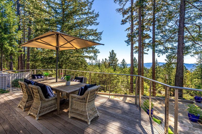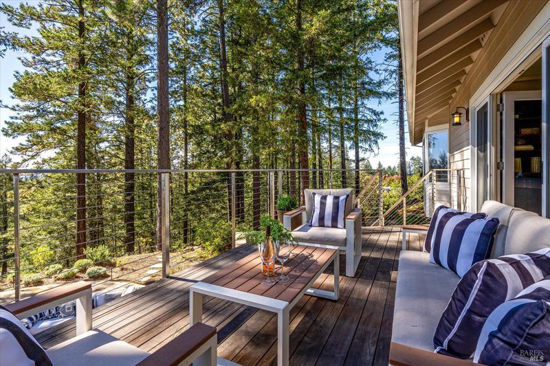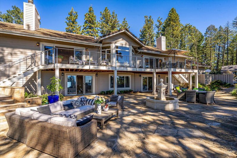 This masterfully renovated farmhouse expresses contemporary style and offers warmth and modern elegance with timeless finishes. Sited on 3+ acres with stunning vineyard & mountain views, the property presents all the hallmarks of a modern farmhouse compound with two separate dwellings. The main house features white oak floors, wood beam ceilings, & abundant windows to create a light & airy atmosphere. Living room with Napa stone fireplace, formal dining room, sumptuous primary suite, and a sophisticated country kitchen with Caesarstone counters, Viking range, farm sink, Sub-zero refrigerator, Bosch dishwasher & large bay window surround eat-in kitchen. The kitchen is located at the heart of the home and flows into the family room. The lower level has a grand recreation area, gym, private guest quarters, and a sauna. A luxurious guest house features a beautiful lavender garden entry, a spacious living room, a full kitchen with a Wolf range, a Sub-zero refrigerator, a farm sink, a Bosch dishwasher, beautiful cabinets, a spacious mud room, and a one-car-attached garage. Outdoor dining & entertaining around a deck & backyard patio with a beautiful fountain imported from France. A beautiful environment to accommodate family and friends for entertaining and holiday gatherings.