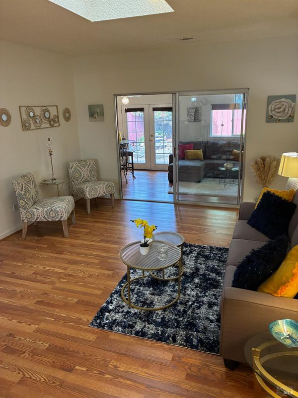 This 4bedroom/2bath home sits on a large corner lot in a well-established neighborhood, with beautiful green trees and shrubs. The interior boasts original hardwood flooring throughout the majority of the home; has separate living and family rooms, both with gorgeous new Pergo wood floors and updated light fixtures. The freshly painted walls are awash in natural light pouring through the windows and skylight. The spacious primary room has an ensuite bath and walk-in closet. The front bedroom has a lovely bay window that overlooks the front patio where you can enjoy morning coffee under the pergola. The large lot has dedicated parking for your RV or Boat as well. Close to shopping, restaurants, parks and easy access to freeway. This home has much to offer, is move-in ready, and just waiting for your personal touches to make it your own!