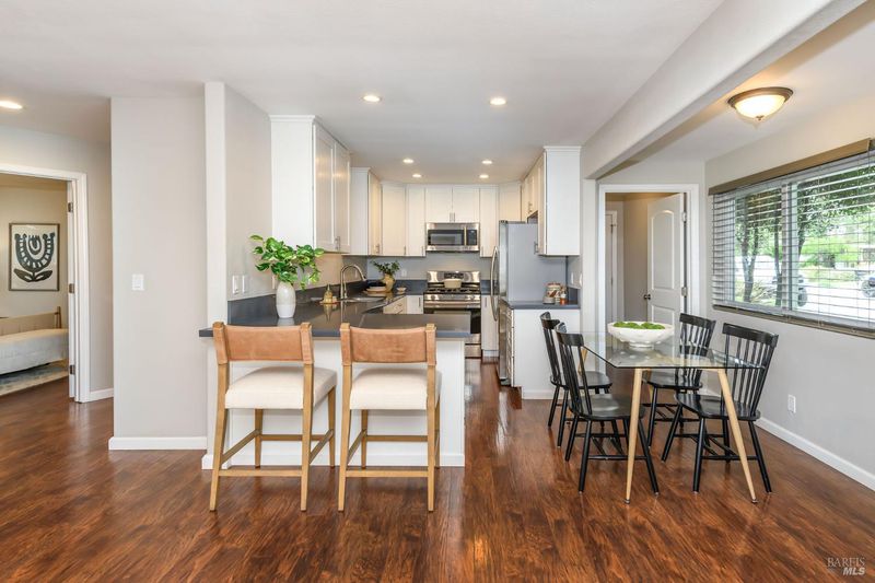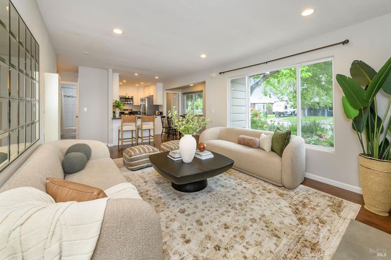 Mid-century bungalow in the historic and charming town of Petaluma. Three bedrooms, two bathrooms, and 1,056sf of updated, contemporary designer touches throughout. A cozy living room with fireplace opens to the dining area and kitchen, perfect for your future gatherings. The backyard features gardens, mature trees, and a shed workshop ideal for outdoor projects and al fresco entertaining. Centrally located near shopping, restaurants, and Petaluma's outstanding schools.