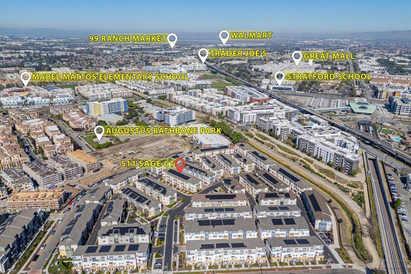 *6-Year-New Townhome Blending Modern Design, Energy Efficiency & Prime Silicon Valley Location. This beautifully upgraded home offers a bright, open-concept layout where the spacious living room flows seamlessly into the dining area and gourmet kitchen, extending to a private patio. The kitchen features quartz countertops, a designer backsplash, a large island, stainless steel appliances, and custom white maple cabinetry. *A desirable bedroom and full bath on the main living level provides flexibility for guests, a home office, or multigenerational living. The primary suite features an ensuite bath and a walk-in closet, creating a comfortable private retreat. Enjoy premium modern upgrades including recessed lighting, central A/C & heating, tankless water heater with water softener & purification system, paid-off solar for significant electricity savings, EV charger outlet, and an attached 2-car garage. *Top-rated schools, including Northwood Elem (9/10) and Morrill Middle School (8/10, 2024 California Distinguished School), plus renowned private options like Merryhill, Stratford, and Challenger. Walk to Milpitas BART with quick access to Highways 880, 237, and 680 for an easy commute to major tech employers. Close to Great Mall, Trader Joes, H Mart, Costco, 99 Ranch, and more.