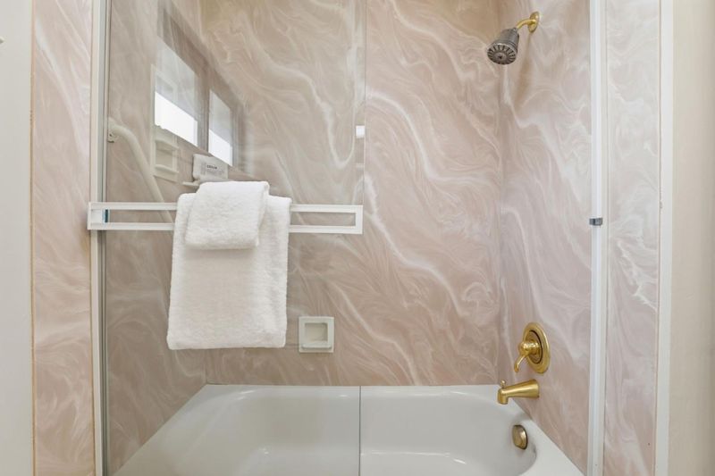- Half on Ground Floor, Primary - Stall Shower(s), Shower over Tub - 1, Solid Surface, Tile