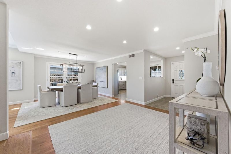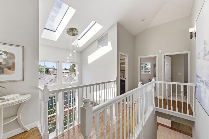 Skylight House: among the larger homes in Fiesta Gardens, offering 2,820 sq ft with a well-designed two-story layout. With easy access to 92, 101, and moments from Trader Joe's, Whole Foods, and Bay Meadows Park, yet tucked away in the serene Fiesta Gardens neighborhood, 1028 Bermuda offers an exceptional combination of convenience and setting. Rare 5-bed, 4-bath floor plan with two bedrooms and two full baths on the main level. The flexible layout with main-level bedrooms is ideal for guests or multi-generational living. At the heart of the home is a dramatic double-height living space where skylights flood the interior with natural light, anchored by a striking glass orb chandelier. The open layout flows to the outdoors, with direct access to the garden and patio from the family room, and side yard access from the dining area. Upstairs, vaulted ceilings extend through three bedrooms & two baths, including the primary suite, enhancing the sense of space and light throughout. Ideally located across from College Park Elementary, home to a Mandarin immersion program, and moments from the pool, clubhouse, tennis courts, and play area amenities exclusive to Fiesta Gardens residents. Plus an EV charger in garage. A rare opportunity to own one of the larger Fiesta Gardens homes.