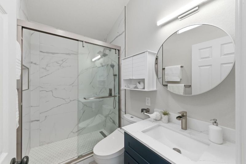 - Shower over Tub - 1, Bidet, Double Sinks, Stall Shower, Skylight, Updated Bath, Oversized Tub, Primary - Oversized Tub, Primary - Stall Shower(s)