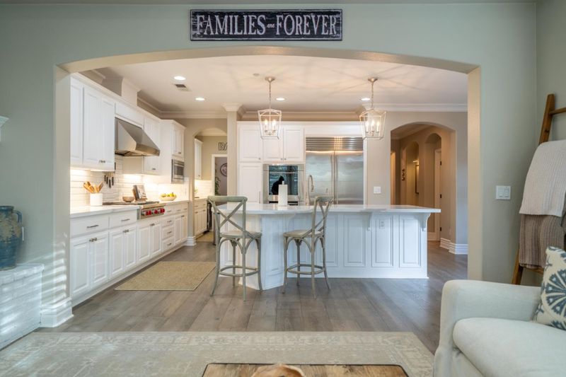 - Cooktop - Gas, Countertop - Quartz, Dishwasher, Exhaust Fan, Garbage Disposal, Hood Over Range, Island with Sink, Microwave, Oven - Built-In, Oven - Double, Refrigerator, Wine Refrigerator